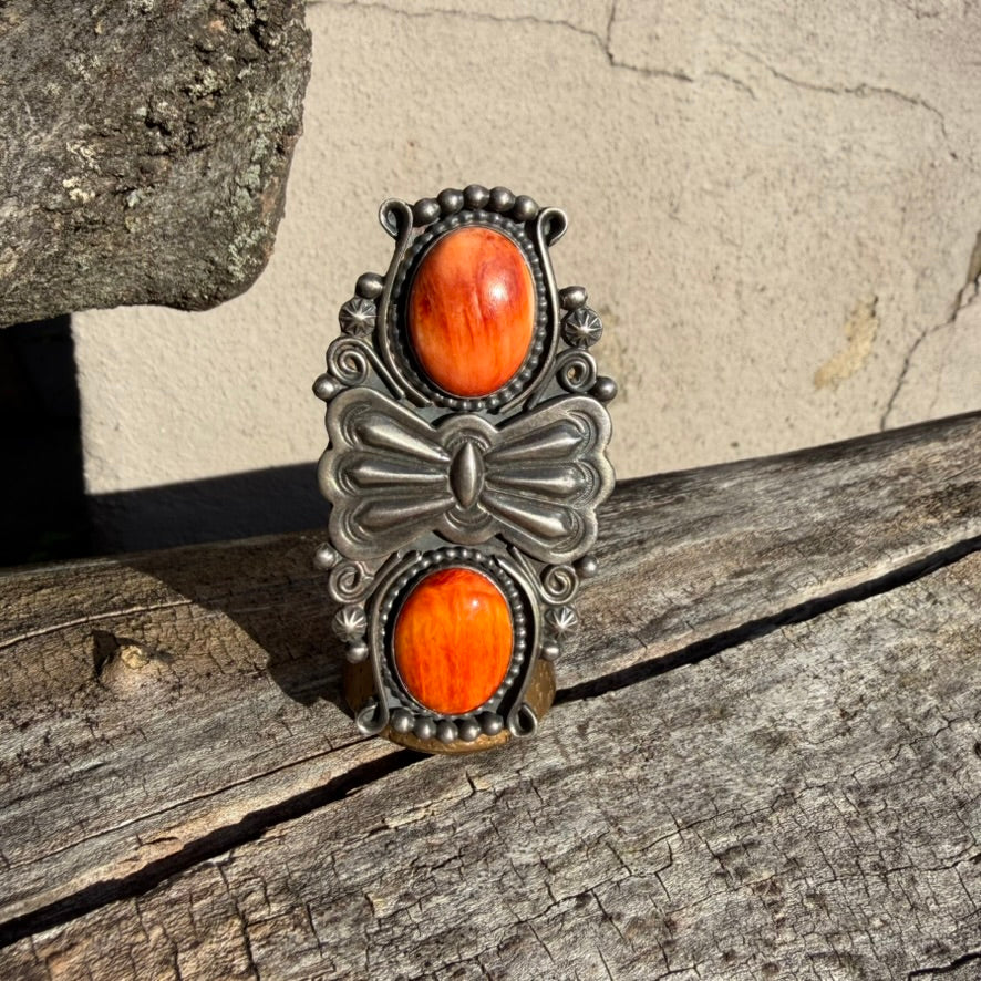 Apache Rosella Paxson Double Spiny Oyster and Sterling Silver Butterfly Concho Ring