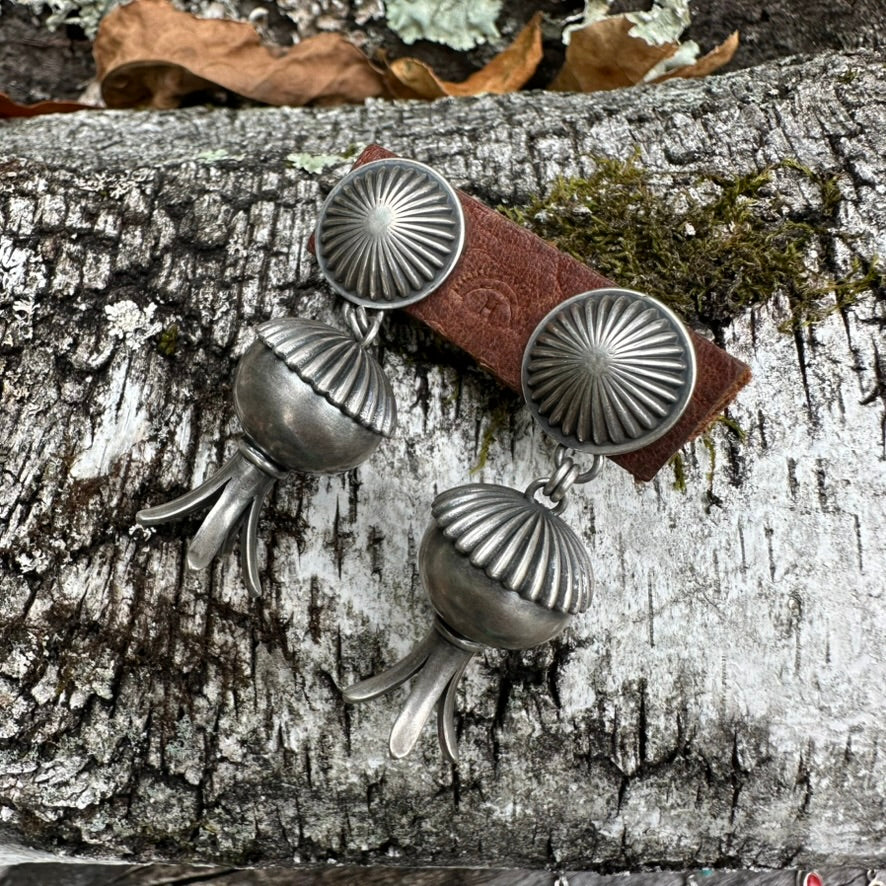 Artisan Made Sterling Silver Sphere Squash Blossom Earrings by Dennis Hogan