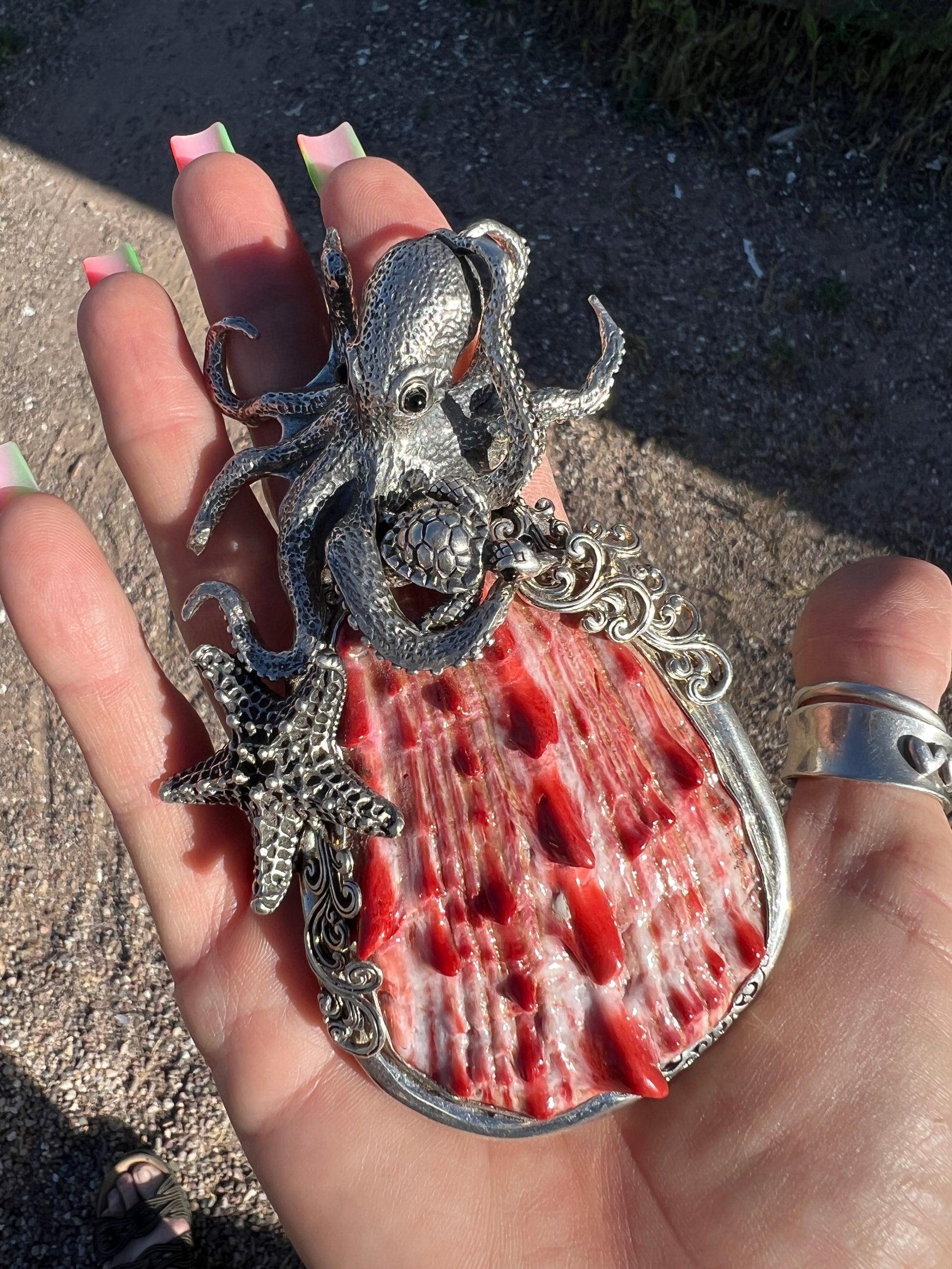 Balinese Sterling and Spiny Oyster Octopus Pendant