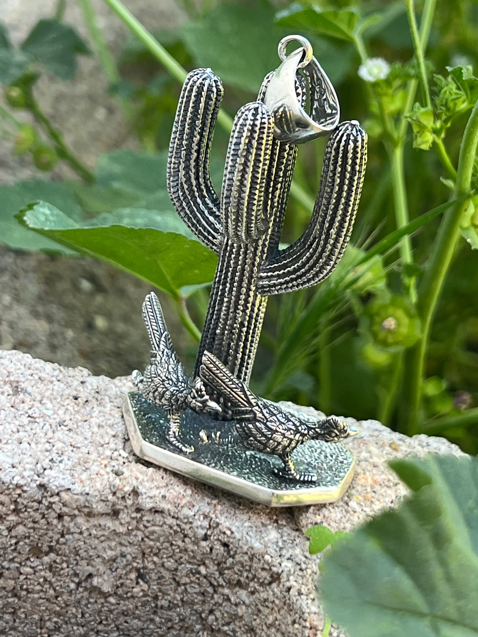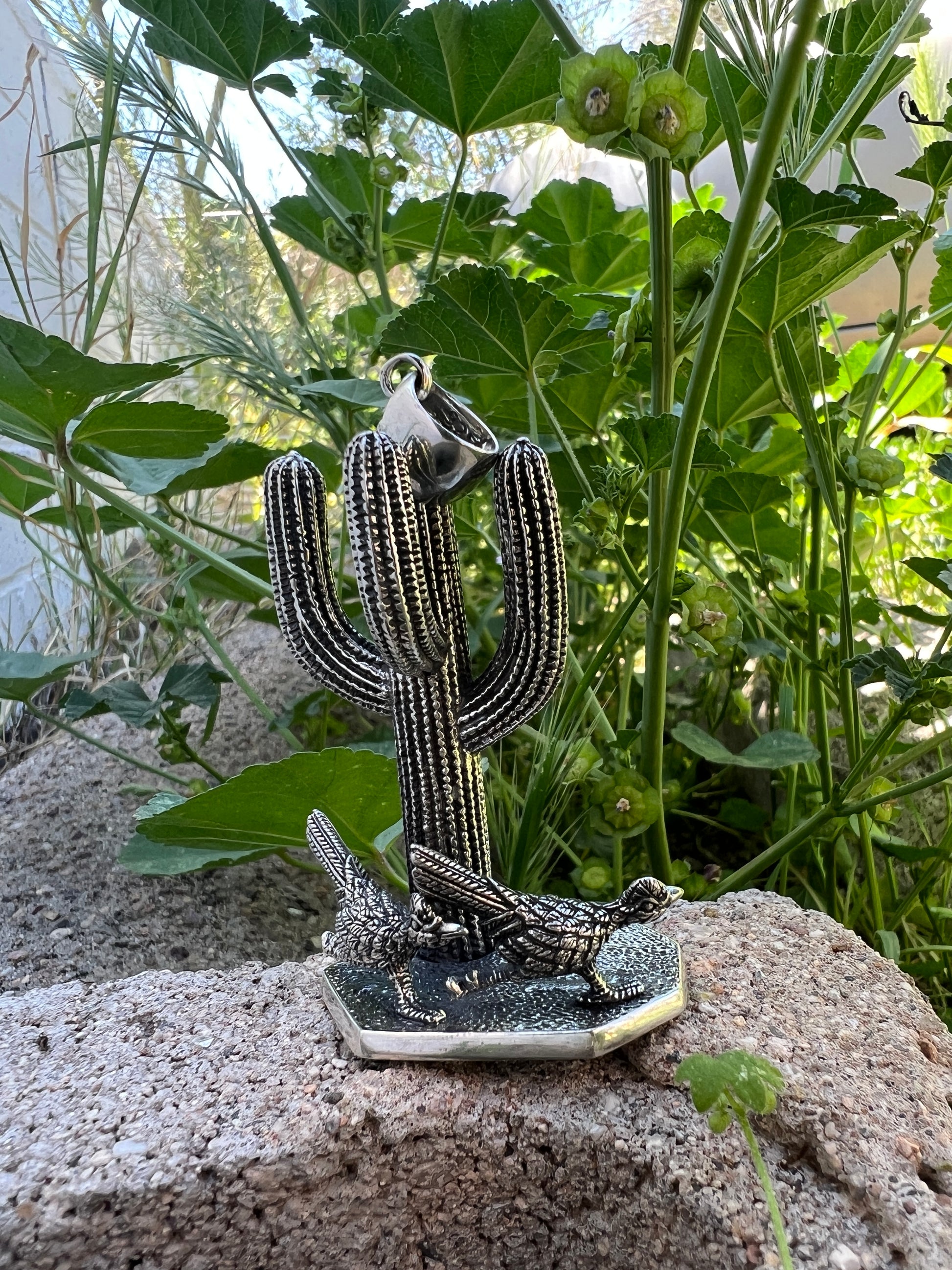 Balinese Sterling Saguaro and Roadrunner Pendant
