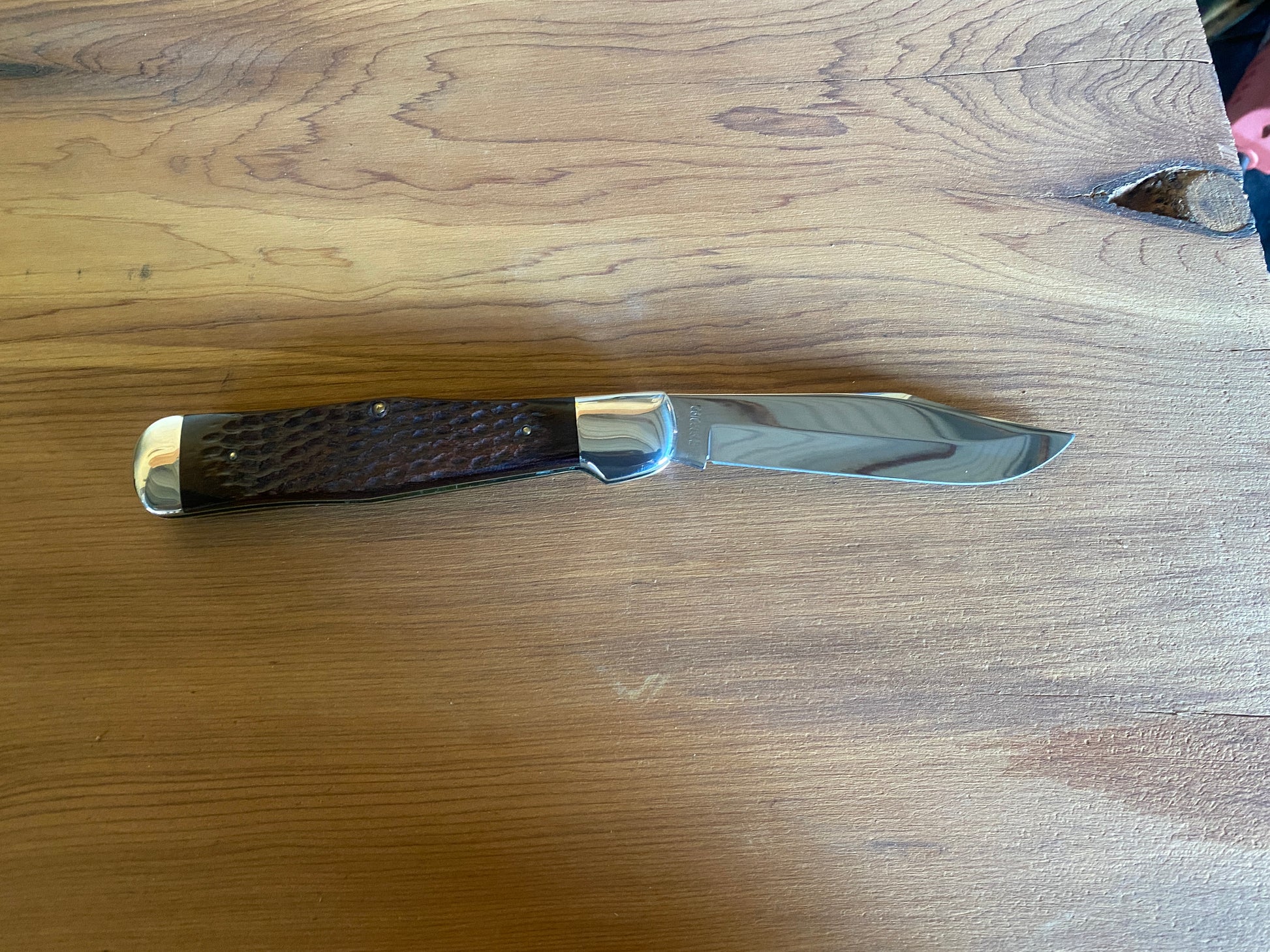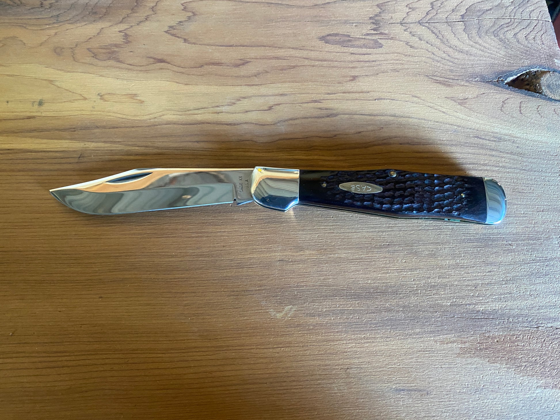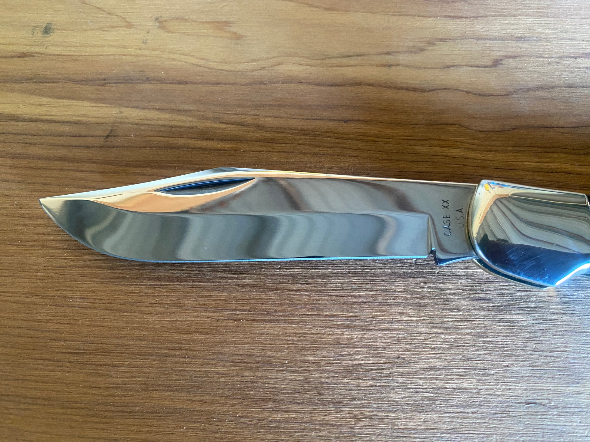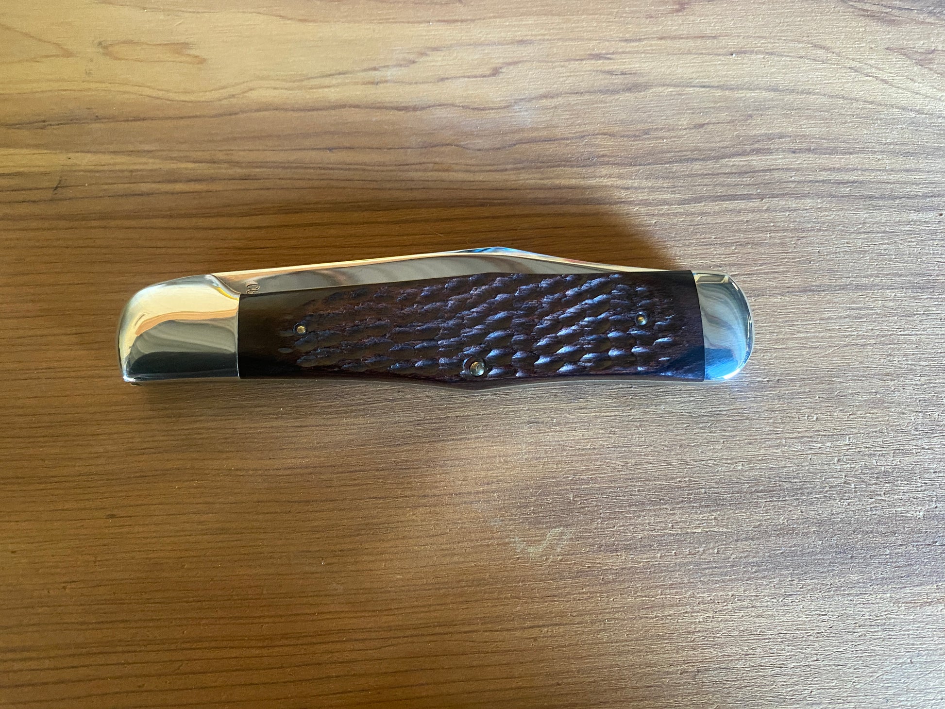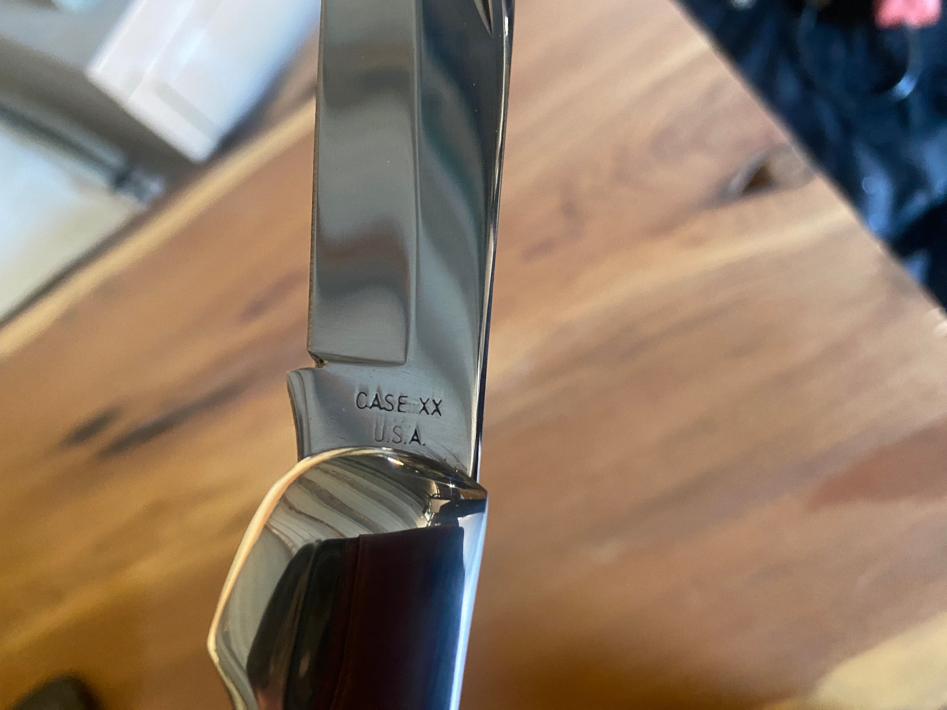 So what we have here is a beautiful Case XX 3 dot C61050sab Coke Bottle Pocket Knife. This knife is in really great condition and appears to have never been carried, used or sharpened. However there a few minuscule pits near the case stamp (see photos). I do not have the box or paper work for this knife. The sheath is not the original one it is one I made for the knife. Please look at all the photos carefully as they are part of the description.