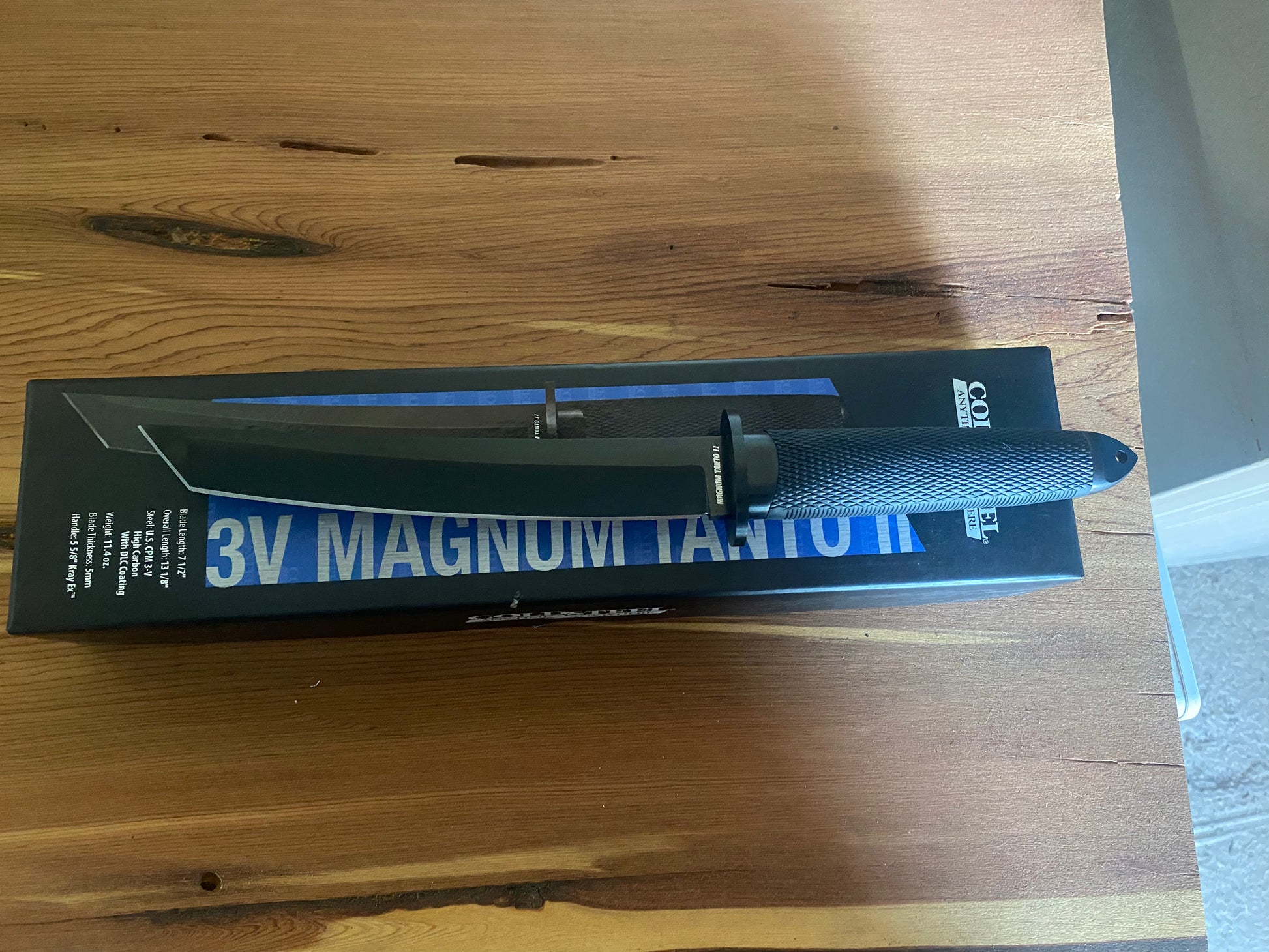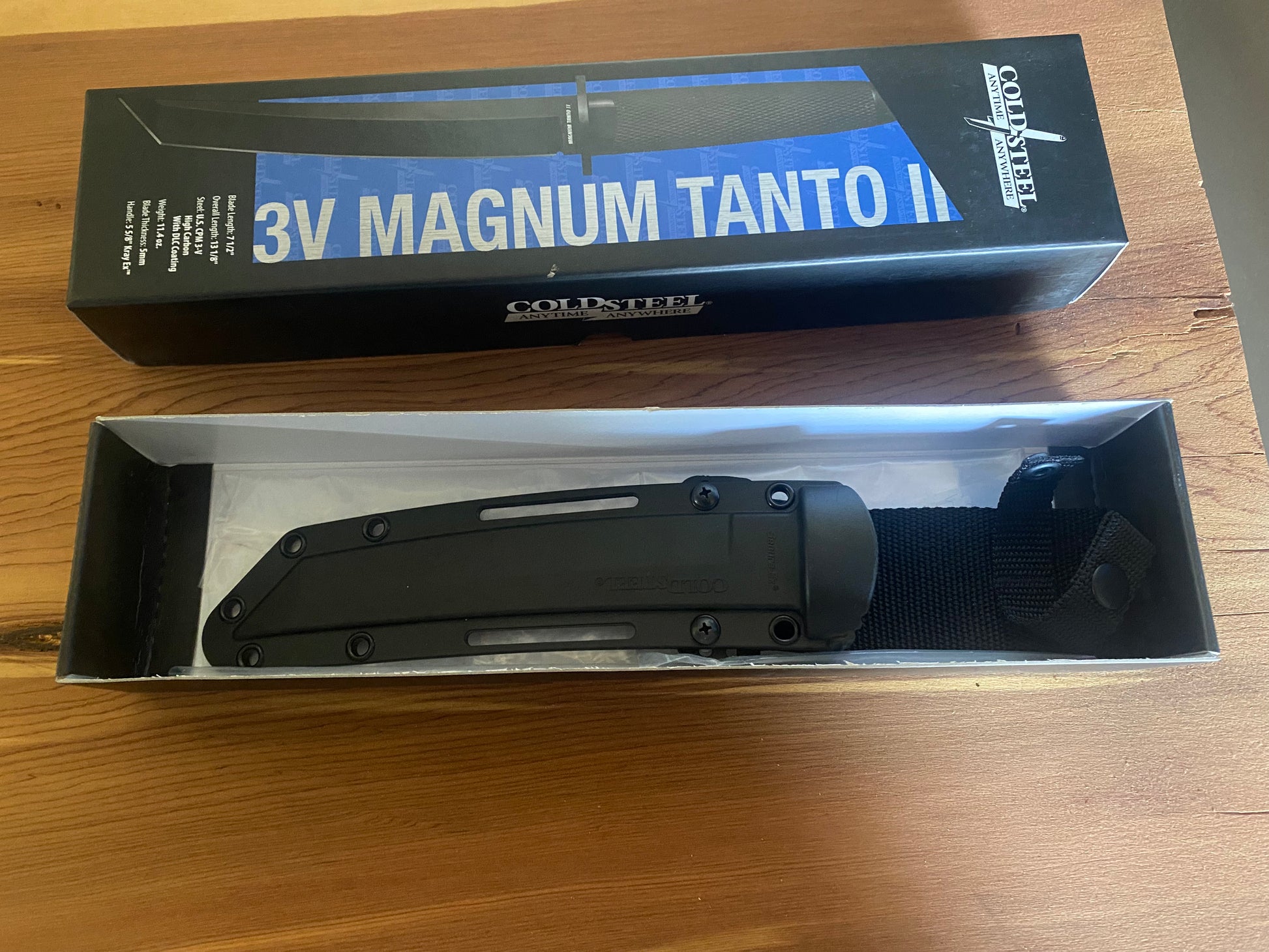 So what we have here is a beautiful Cold Steel Nightfall 3V Magnum Tanto II Sheath Knife, brand new in the box. This blade comes with its original box, and sheath. The sheath is the original one and is also new unused condition.Please be sure to look at all the photos carefully as they are part of the description