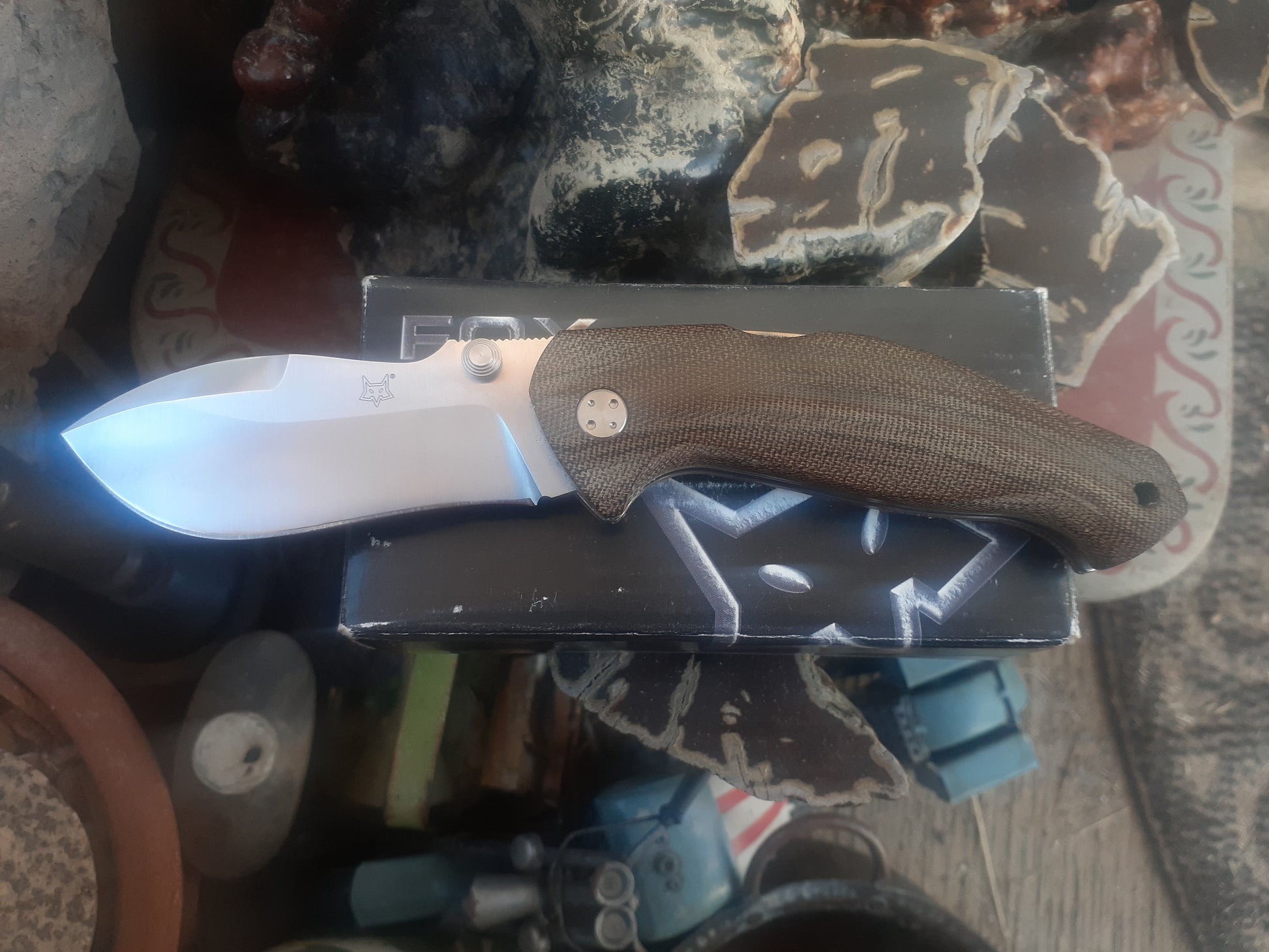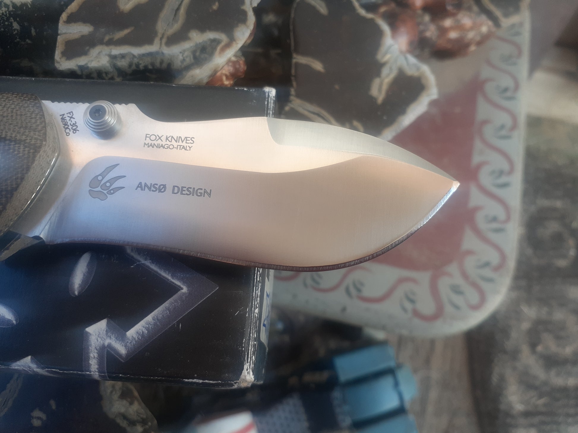 So what we have here is a beautiful Fox FX-306 Anso Mojo Folding Hunter. This knife is in fantastic unused condition. The box that comes with it is its original and Is in good condition, the sheath is also the original to the knife and is in fantastic condition. The only reason I have it marked as used is because I do not have the paper work anymore. Please be sure to look at all the photos carefully as they are part of the description.