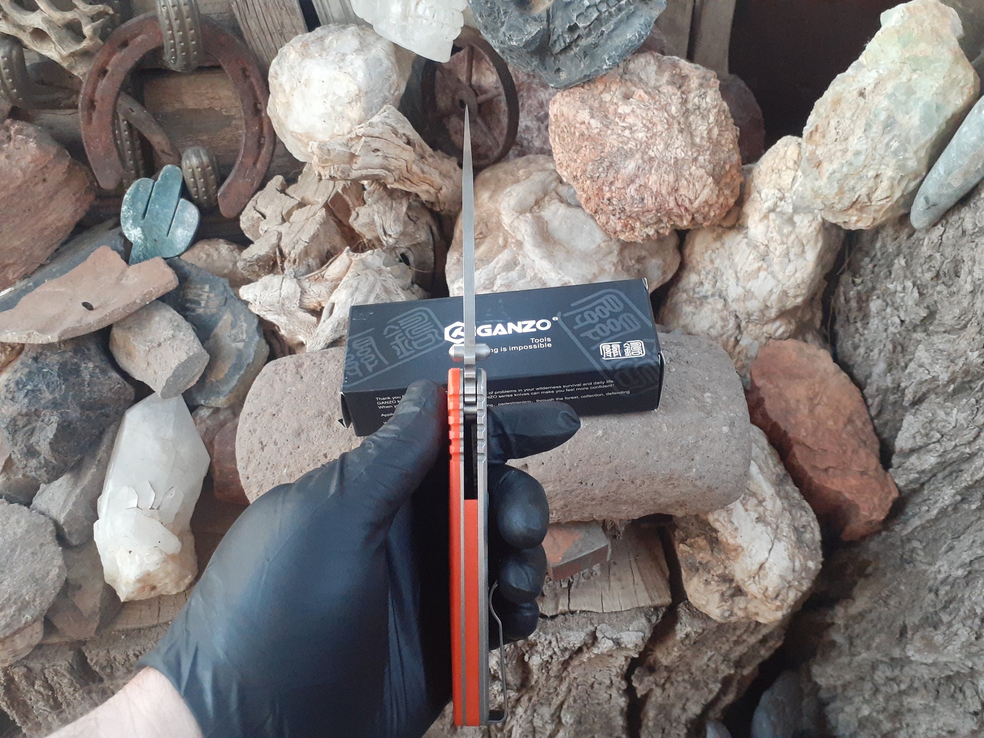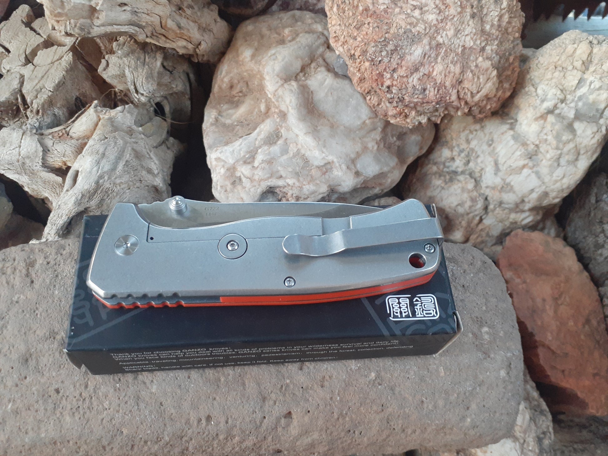 So what we have here is a beautiful Ganzo G722 Orange Pocket Knife. This knife is brand new in its original box with the paper work and wrapping. Please look at all the photos carefully as they are part of the description.