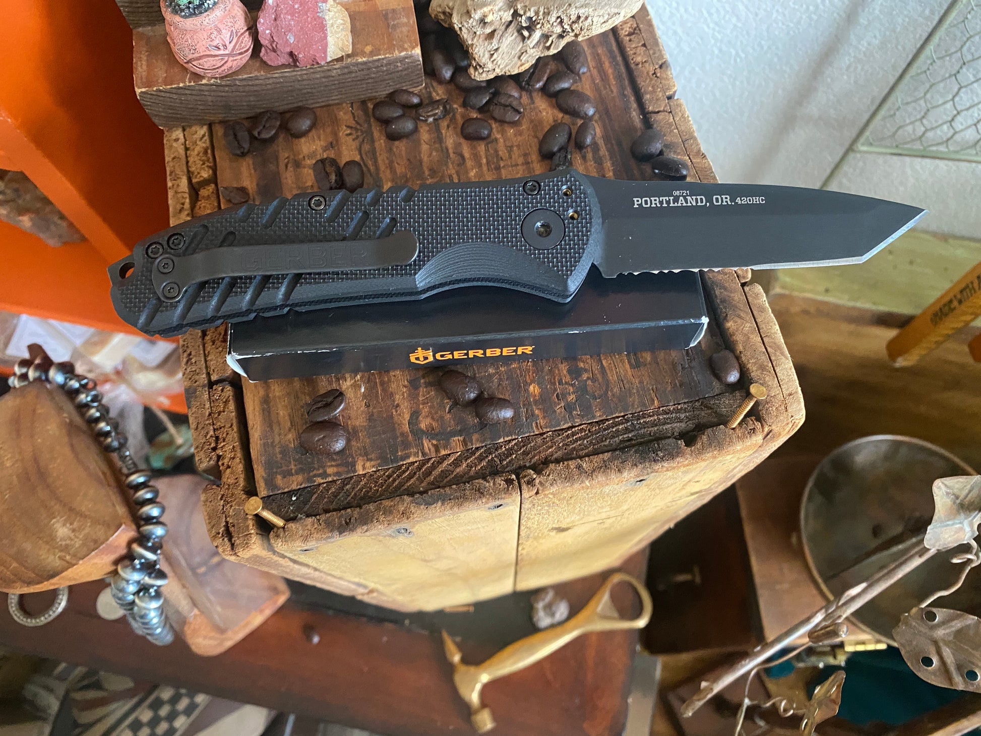 So what we have here is a beautiful Gerber Propel Tactical Auto Pocket Knife. This knife is in really great condition and appears to have not been used, carried, or sharpened. it comes with its original box, and paperwork however the box does has wear this is do from the previous owner taking to and from shows and not storing it properly (see photos). Please be sure to look at all the photos carefully as they are part of the description.