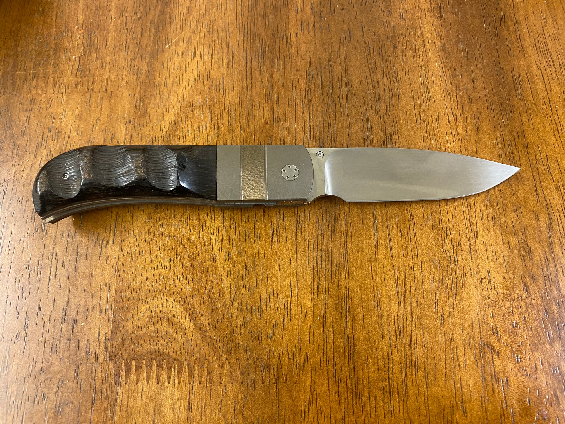 Handles: gemsbok horn with bead blasted titanium bolsters