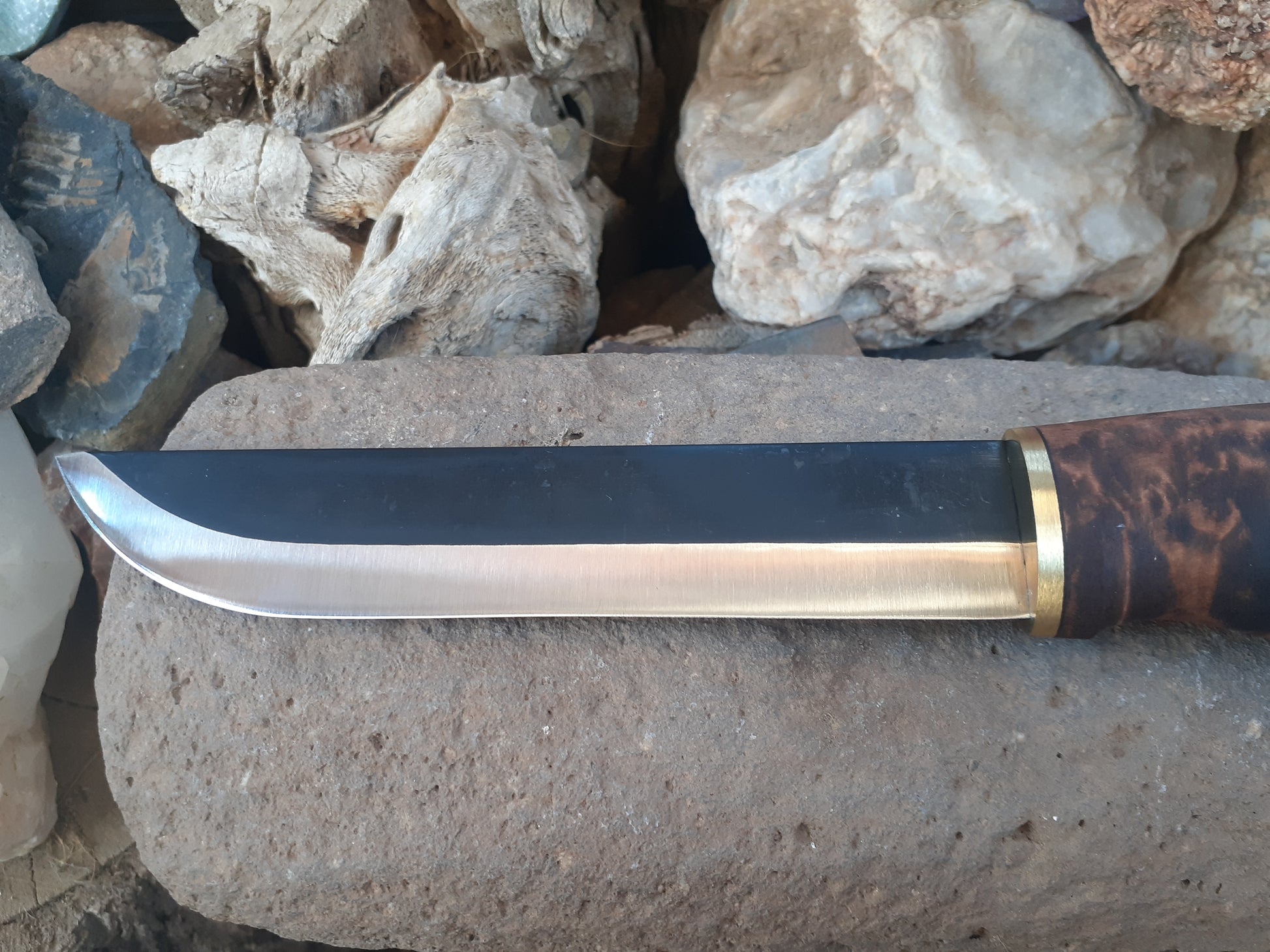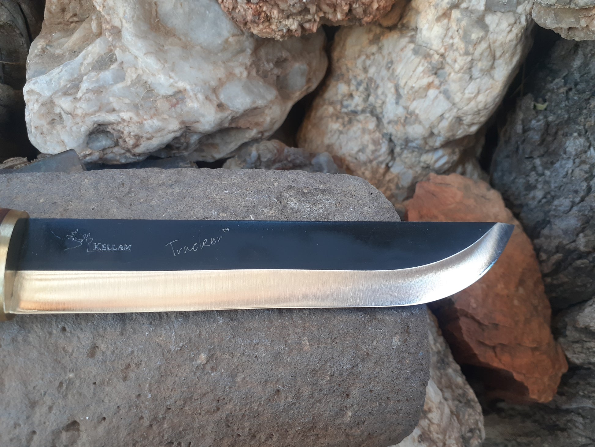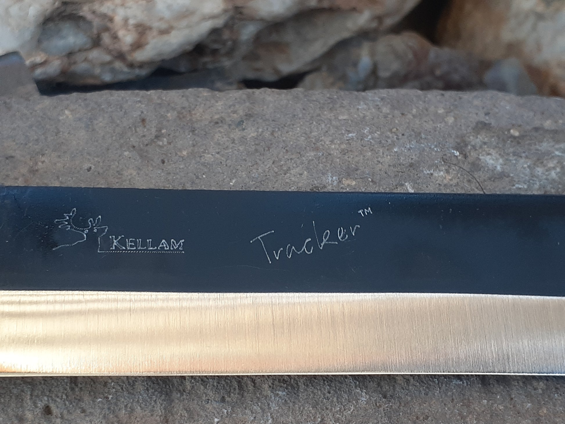 So what we have here is a beautiful Kellam Tracker sheath Knife. This knife is brand new, with its original plastic bag and leather sheath.