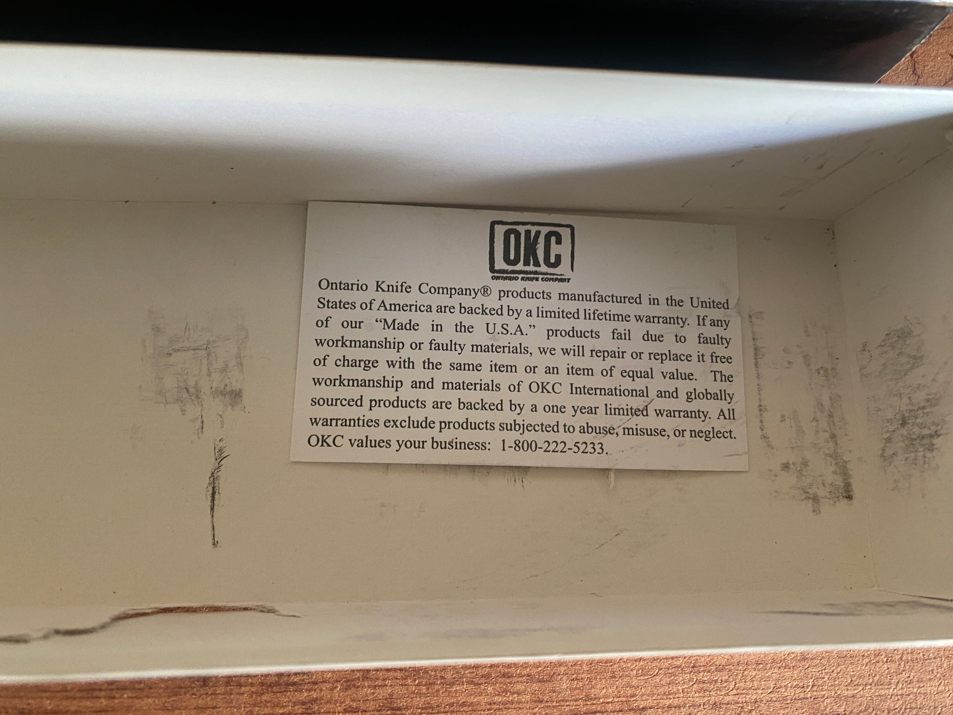 So what we have here is a beautiful Ontario Marine Combat Sheath Knife. This knife is brand new in its original box,and comes with its original sheath as well as paperwork. Please look at all the photos carefully as they are part of the description.