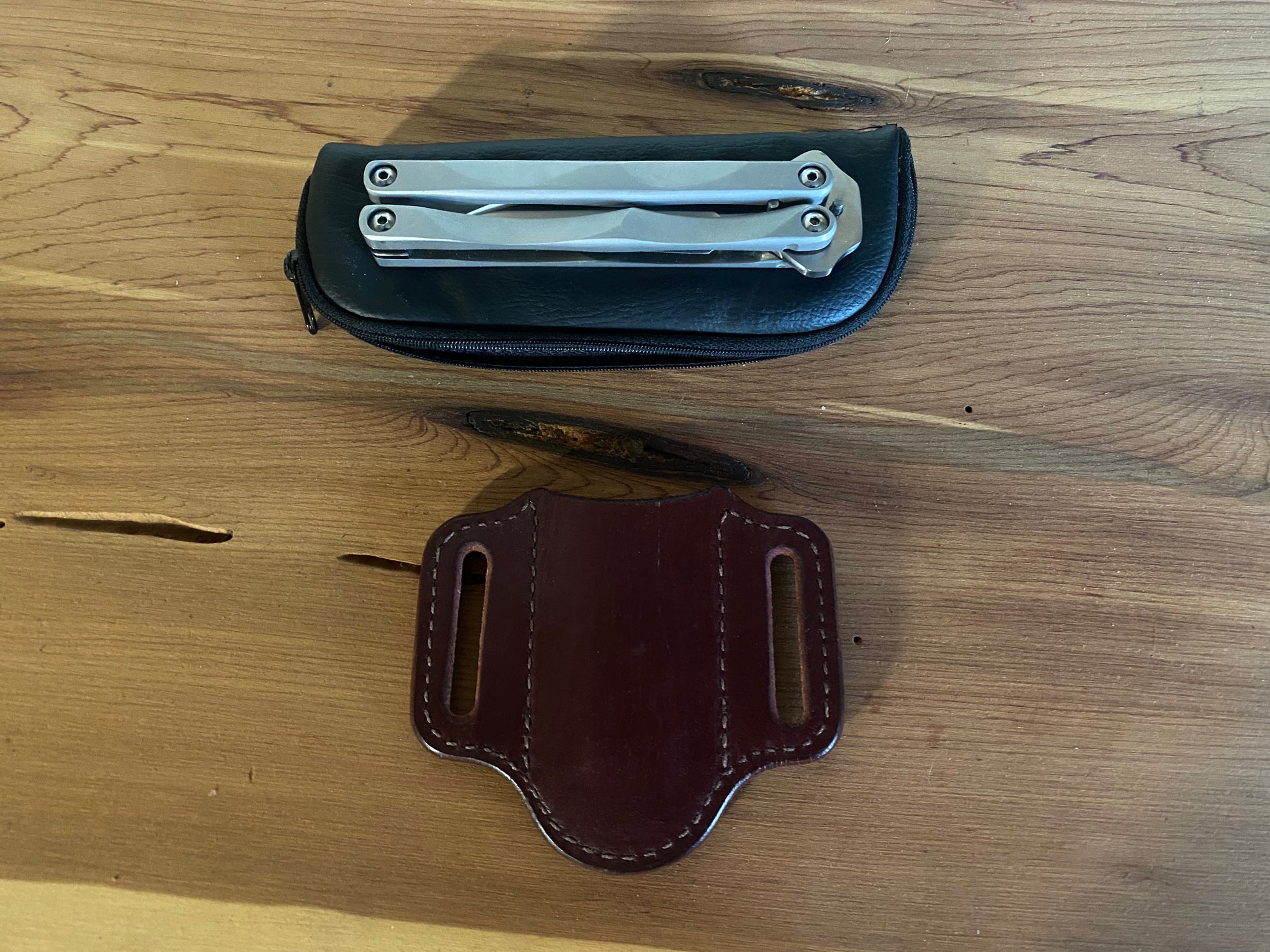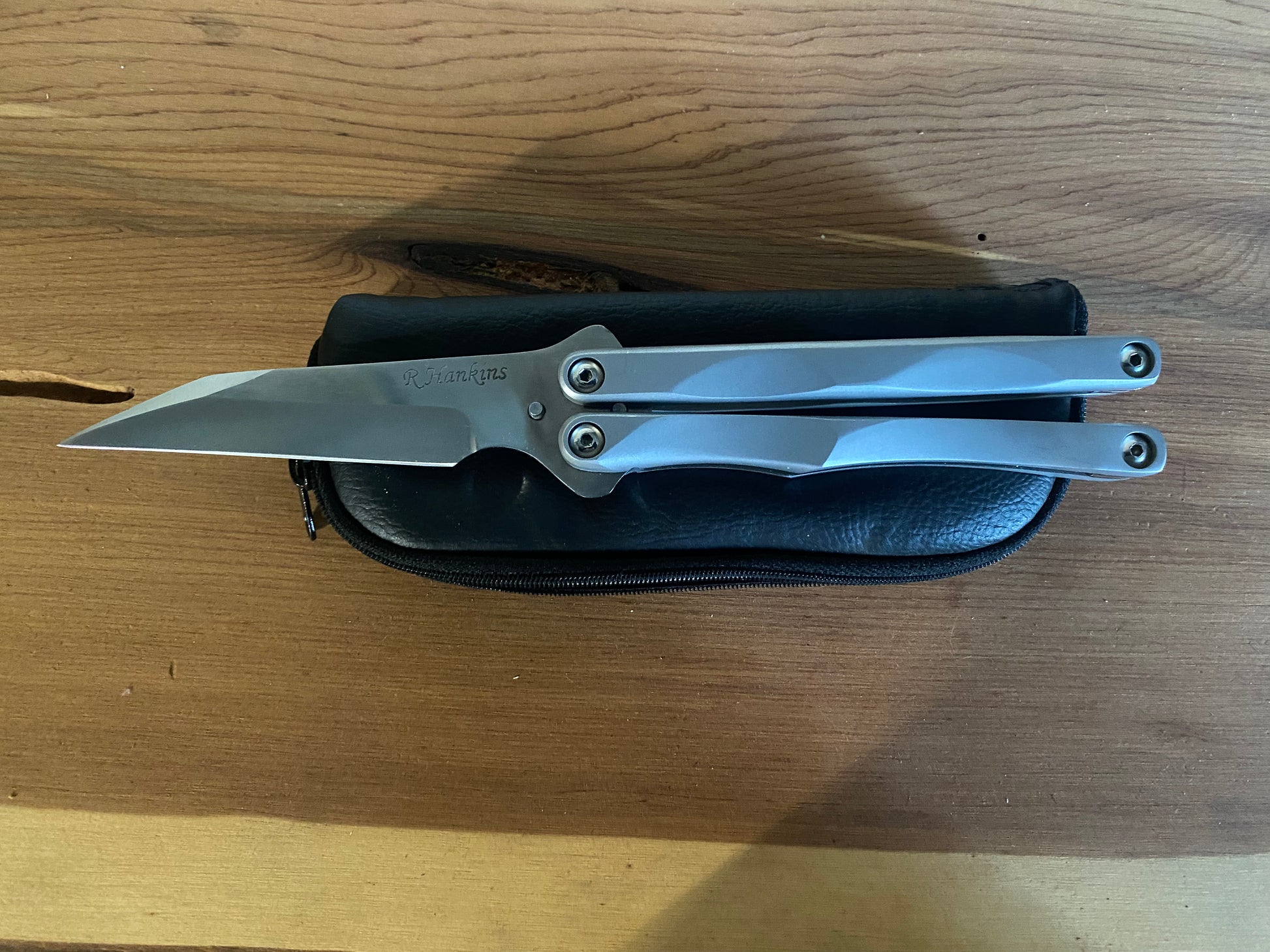 So what we have here is a beautiful R. Hankins Butterfly knife.This knife is in fantastic condition and appears to have not been used, carried, or sharpened, however there are two very small pits near the blades grind (see photos). The sheath and case that comes with this blade are not original to this knife but they are also in fantastic condition. Please be sure to look at all the photos carefully as they are part of the description.
