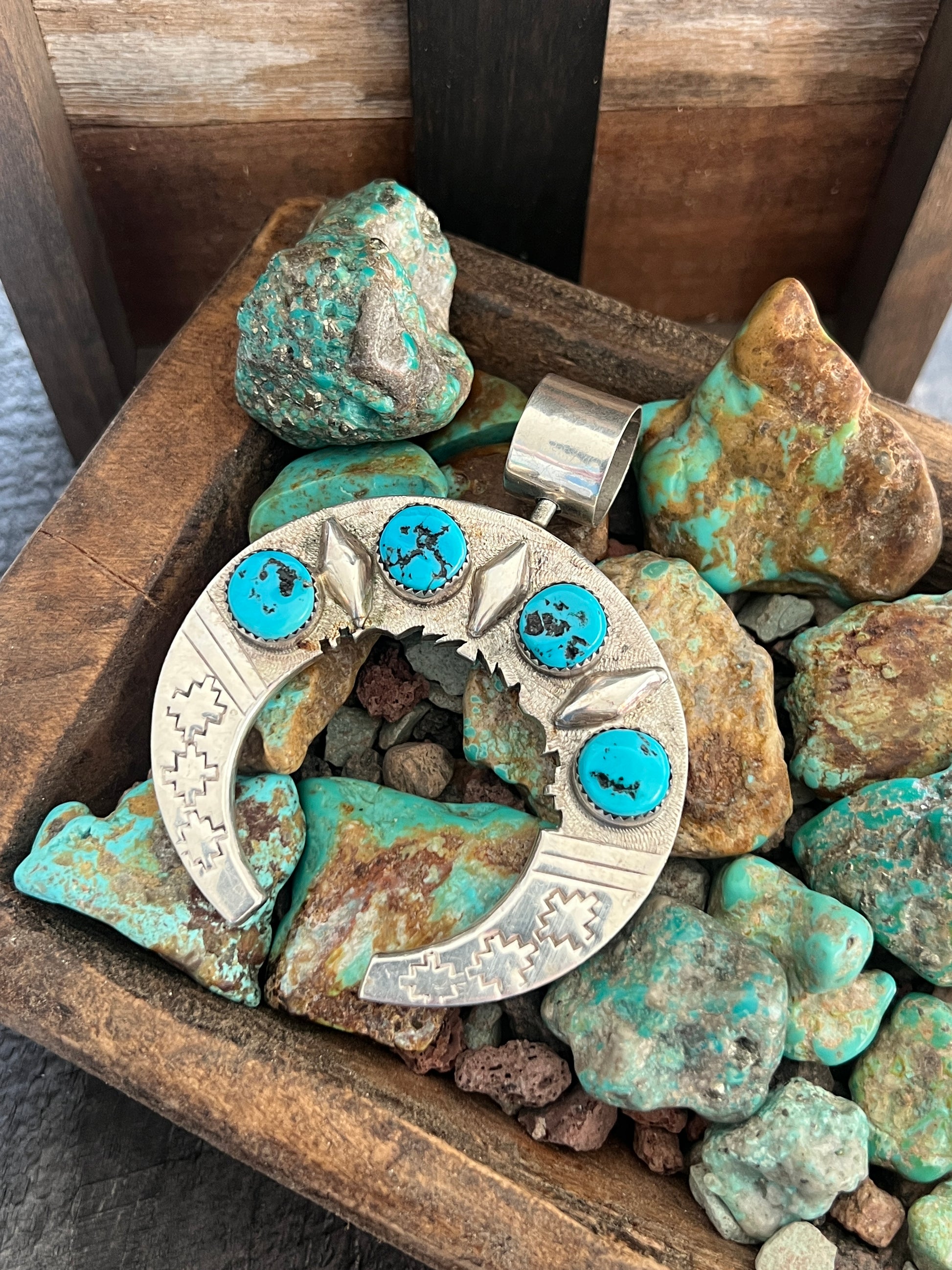 Reversible Sterling Silver, Turquoise and Coral Naja Pendant by Leonard Nez