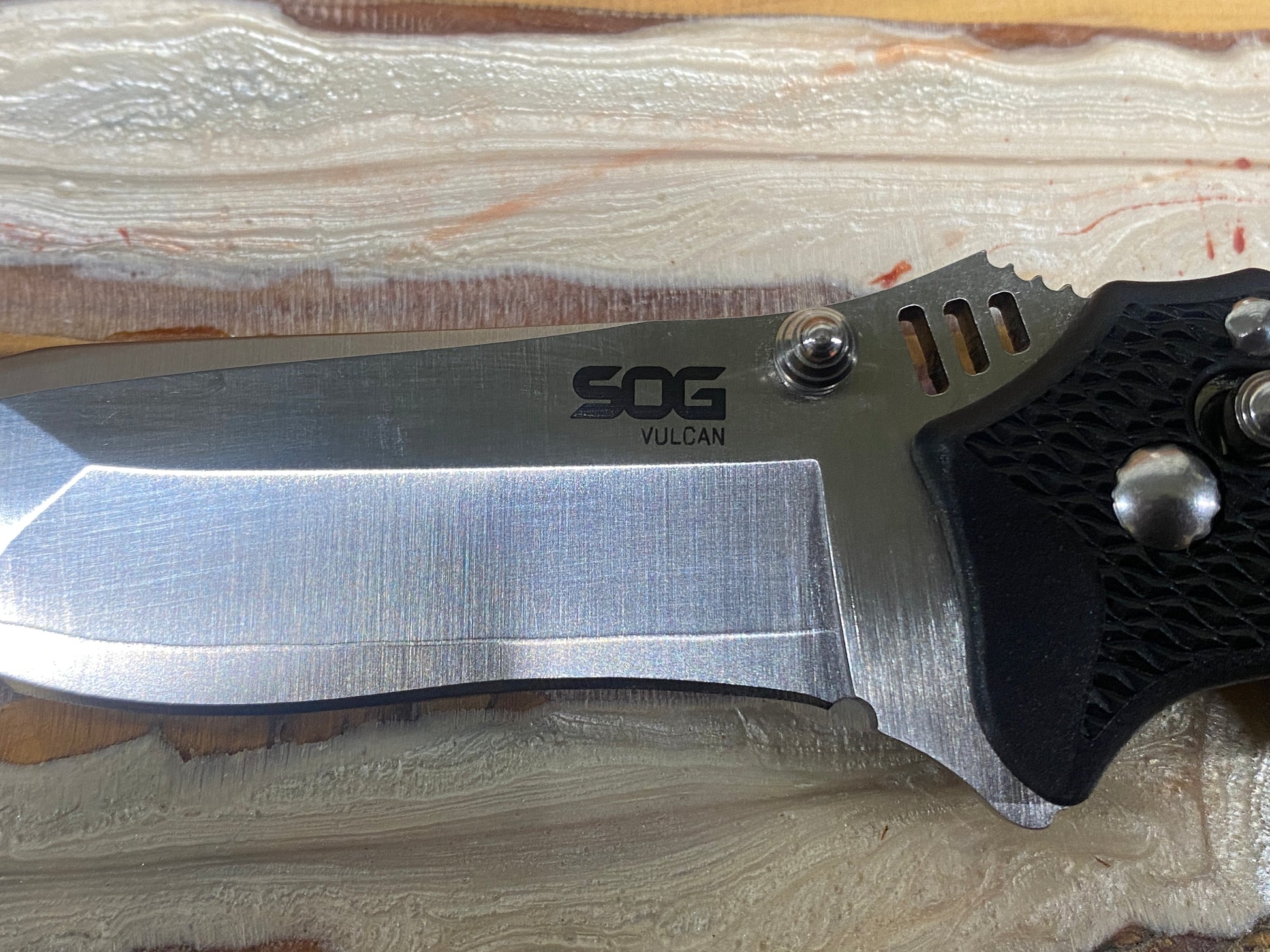 So what we have here is a beautiful Sog Vulcan Pocket Knife. This knife is fantastic condition and appears to have not been used, carried, or sharpened. however I sadly don’t the box or paperwork for this knife. please be sure to look at all the photos carefully as they are part of the description.