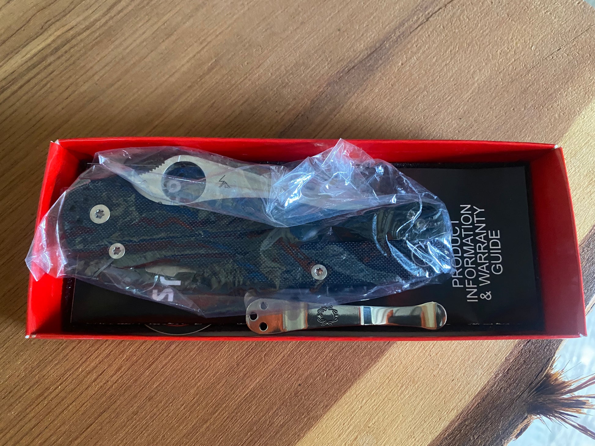 So what we have here is a beautiful Spyderco paramilitary 2 Pocket Knife. This knife is brand new in its original box with the paper work and second pocket clip. Please look at all the photos carefully as they are part of the description.