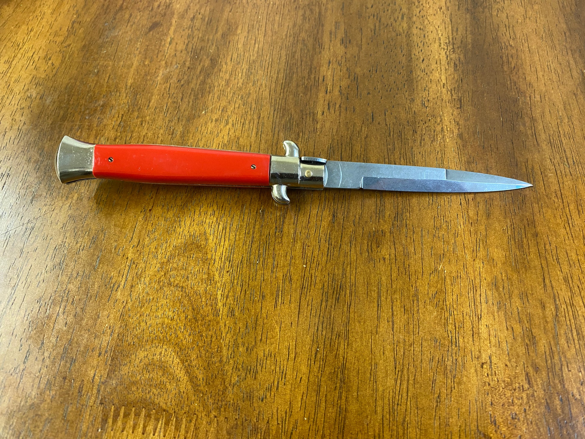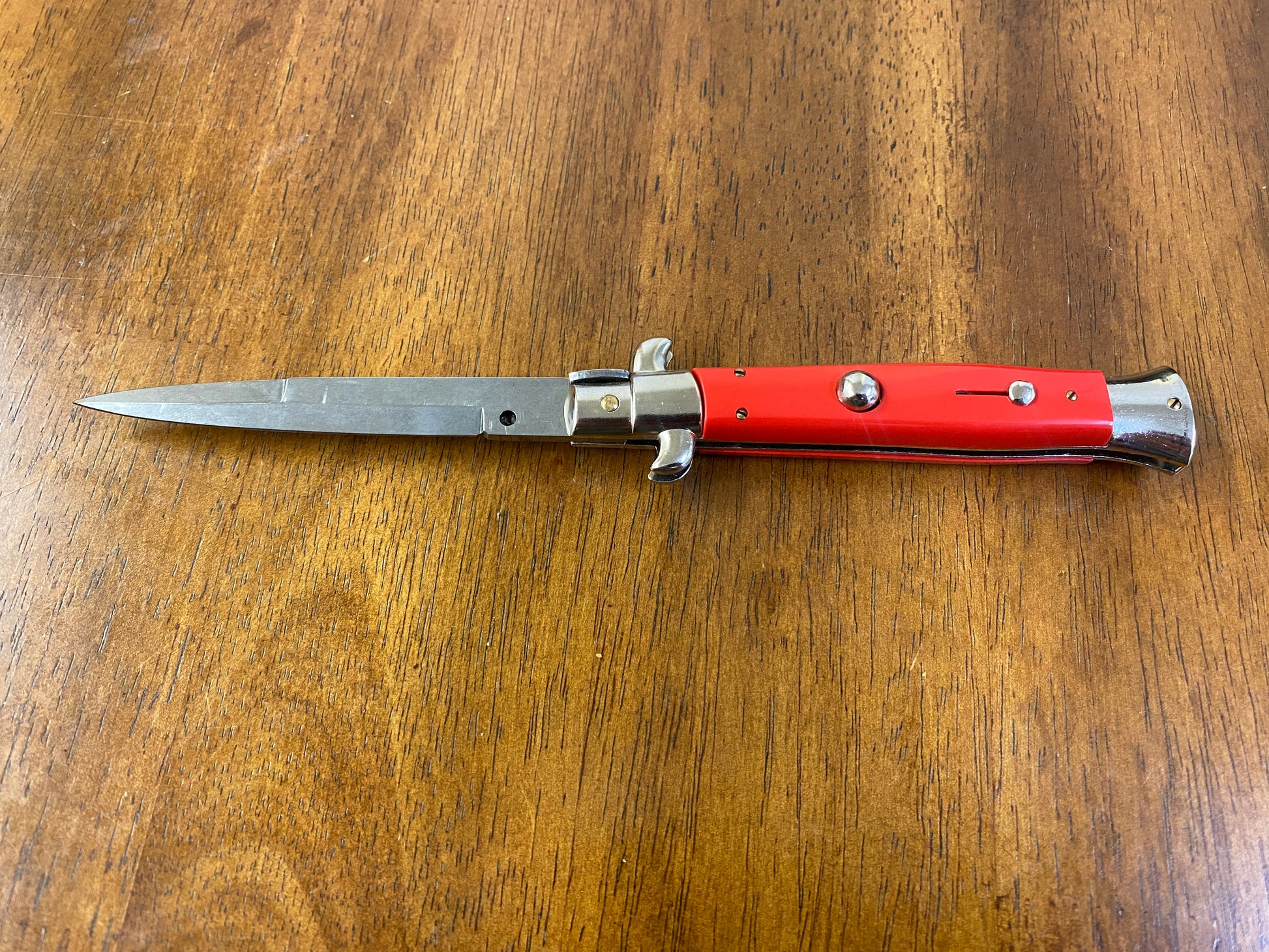 So what we have here is a beautiful stiletto Italy Automatic Pocket Knife. This knife is in really great condition and appears to have not been used, sharpened or carried. However there are a few small scratches on the blade this is probably due to the previous owner letting the public open and close It at the shows (see photos). I do not have a box or any paperwork for this knife. Please be sure to look at all the photos carefully as they are part of the description.