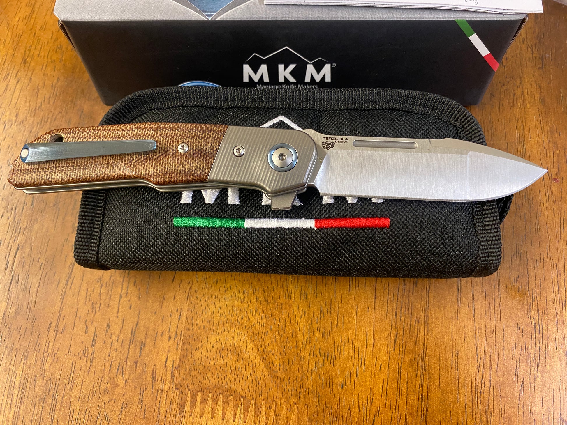 So what we have here is a beautiful MKM Clap pocket Knife.This knife is new and has not been used, carried, or sharpened. And it comes with its original box and paperwork. Please be sure to look at all the photos carefully as they are part of the description.