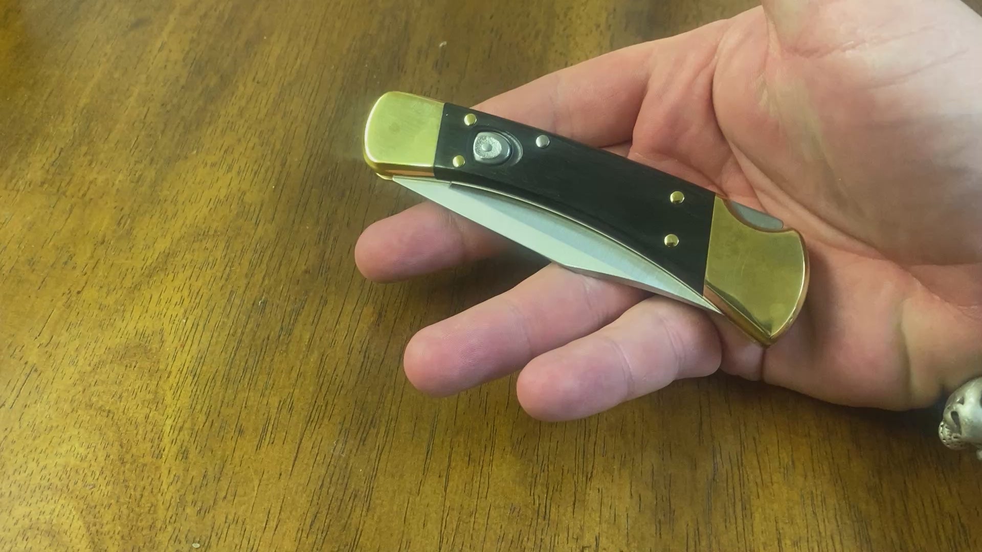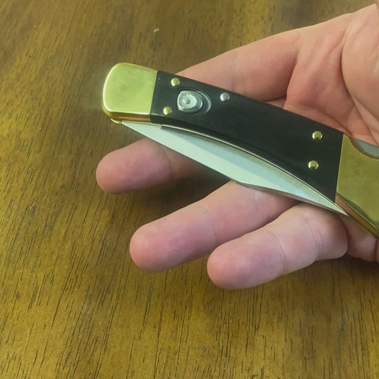 So what we have here is a beautiful Buck 110 Auto pocket Knife.This knife is new and has not been used, carried, or sharpened. And it comes with its original box and paperwork. Please be sure to look at all the photos carefully as they are part of the description.
