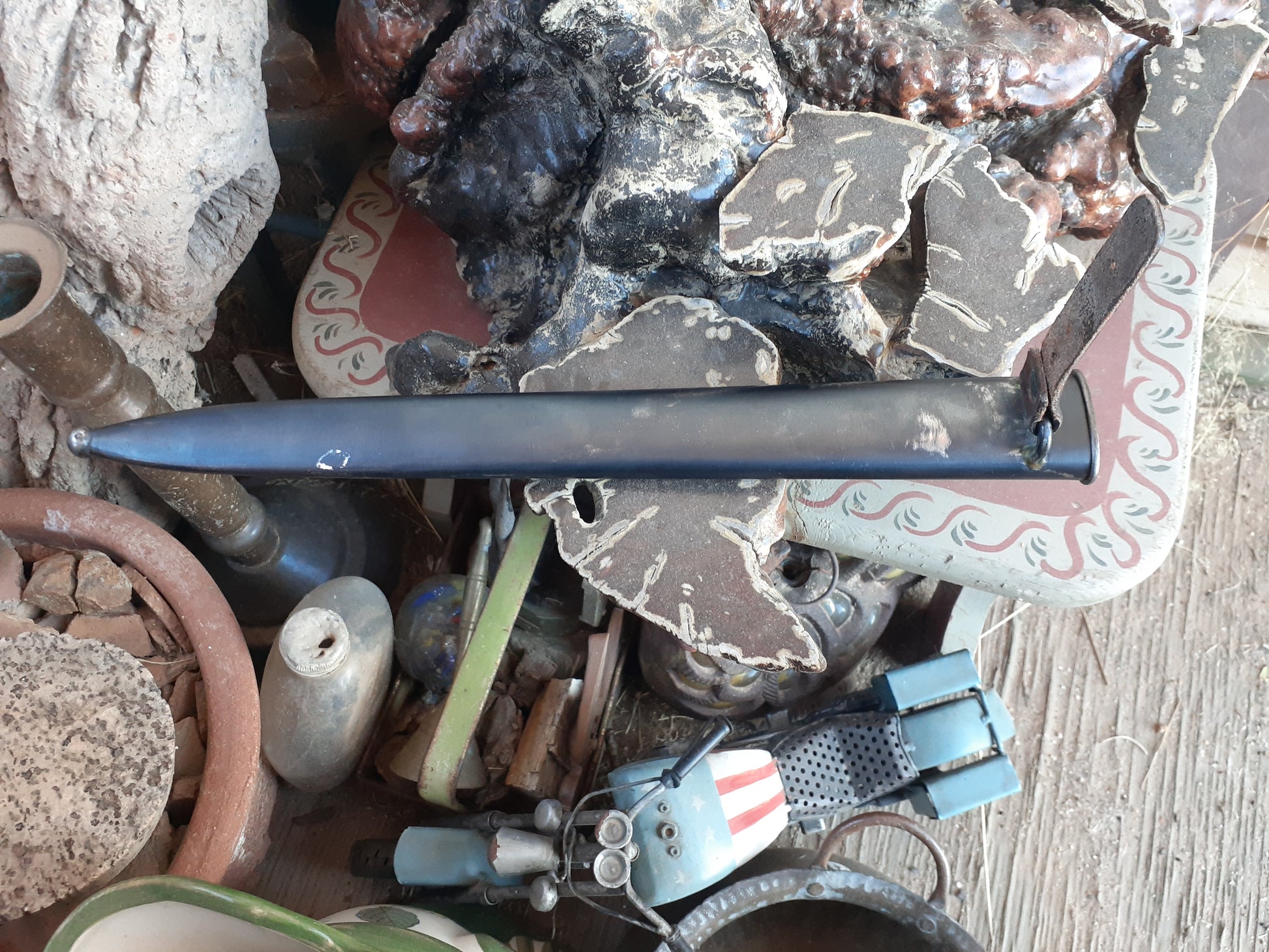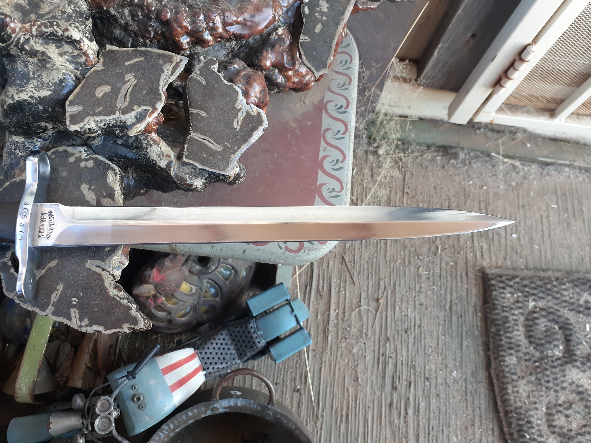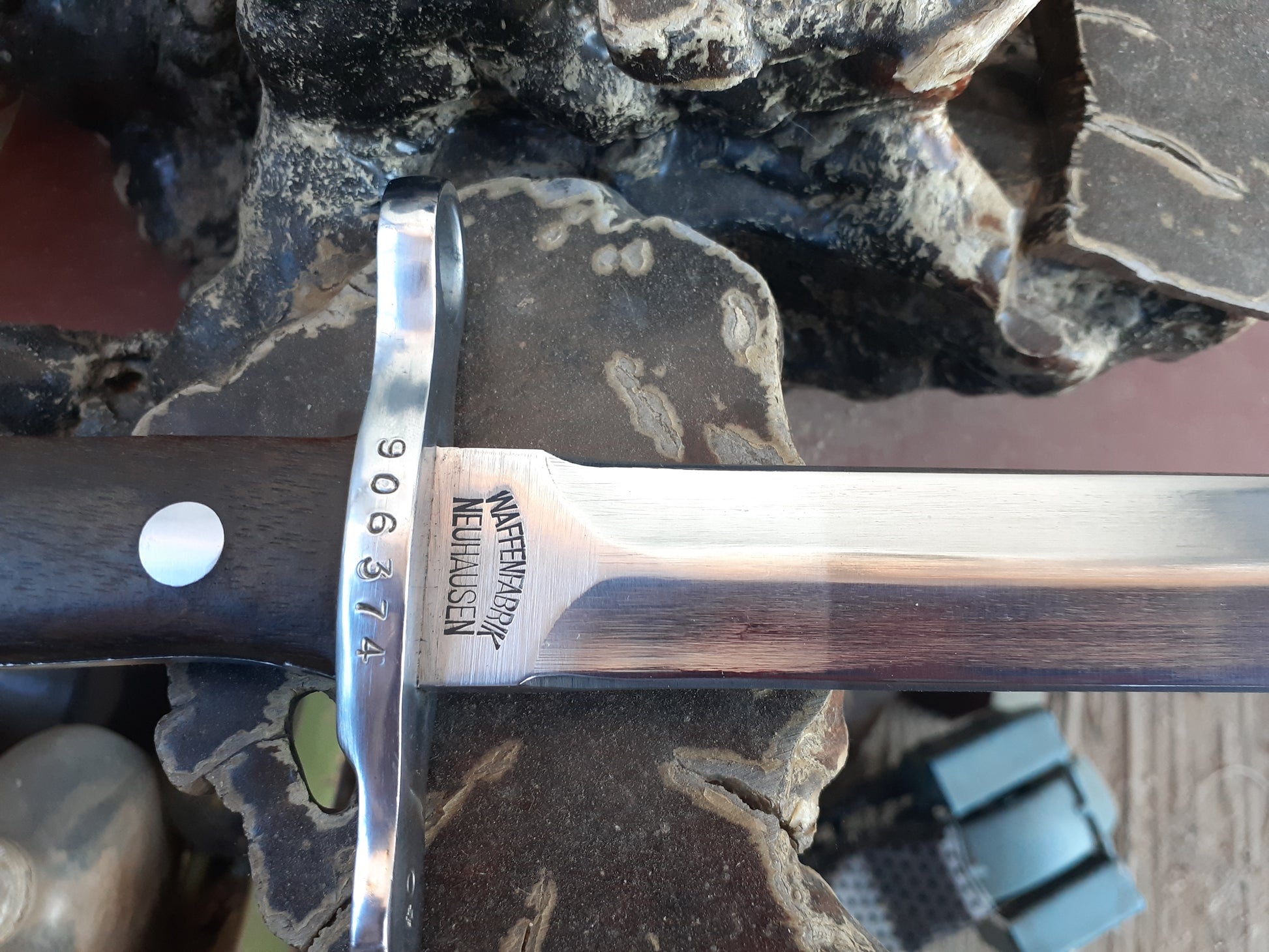 So what we have here is a beautiful Waffenfabrik Neuhausen Swiss Bayonet. This bayonet is in great condition with only some minuscule sheath wear on the blade and some small dents on the wood part of the handle. The sheath that comes with this knife is in pretty good condition but it does have some paint wear on it. There are not any dents or major dings on the sheath. Please look at all the photos as they are part of the description, and please ask any questions before purchasing as this is a final sale. There are no refunds or returns.